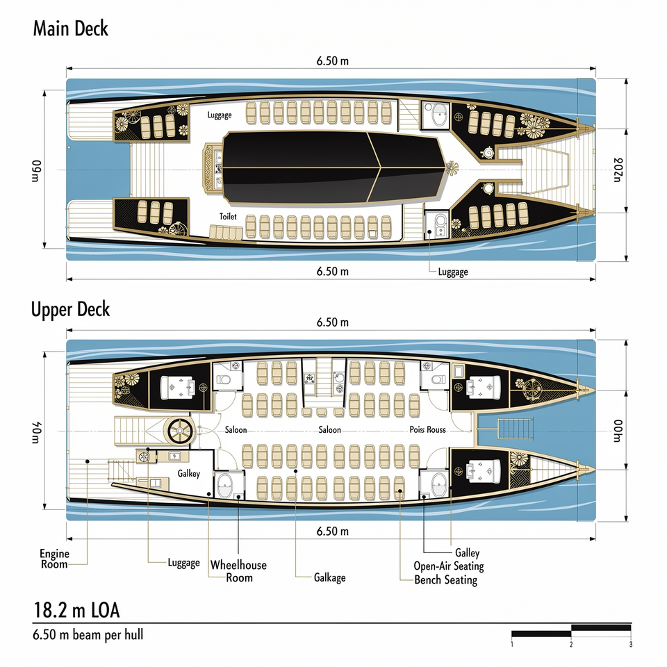 UBI 18100A Customized Leisure Cruising Yacht 11.8M 100 PAX Inboard Engine 350HP Marine Grade Aluminum Alloy HD-1180B Hull 30-35