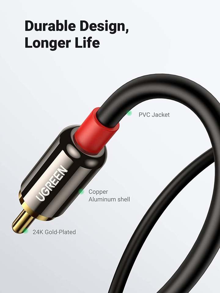 UGREEN 3.5mm to RCA Cable RCA Male to Aux Audio Adapter HiFi Sound Headphone Jack Adapter Metal Shell RCA Fast