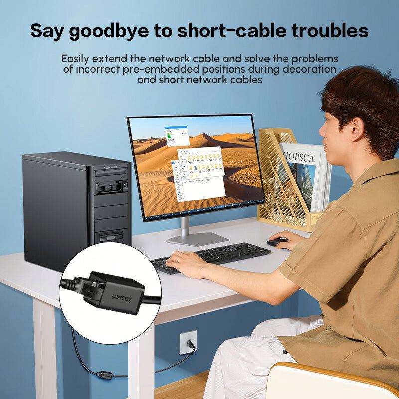 UGREEN Ethernet Extension Cable Cat6 LAN Cable Extender Cat 6 RJ45 Network Patch Cord Male to Female Connector