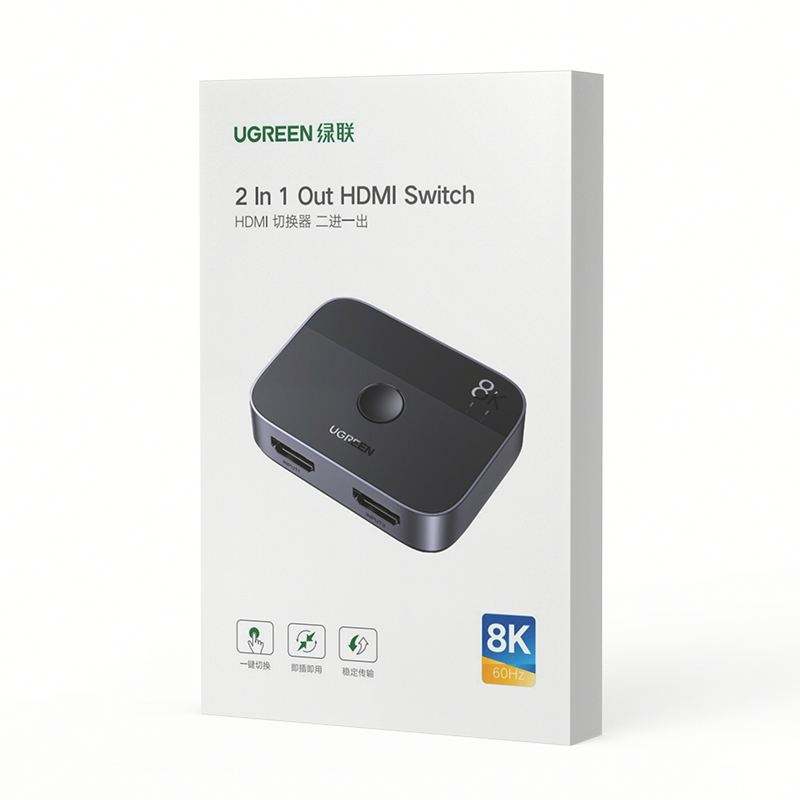 UGREEN HD-MI 2.1 Switch Ultra HD 8K@60Hz HD-MI Splitter 2 in 1 Out High Speed 48Gbps Switch