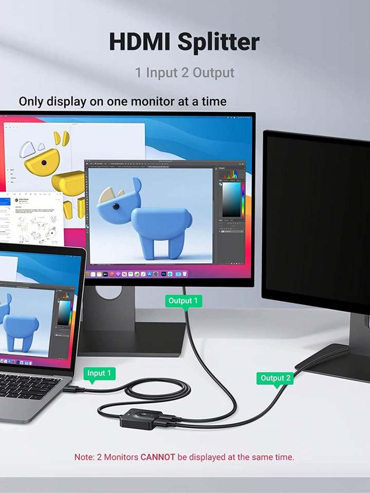 UGREEN HD-MI Switch 4K@60Hz with 3.3FT HD-MI Cable Bidirectional Splitter 2 in 1 Out HD-MI Switcher Box ugreen video splitter