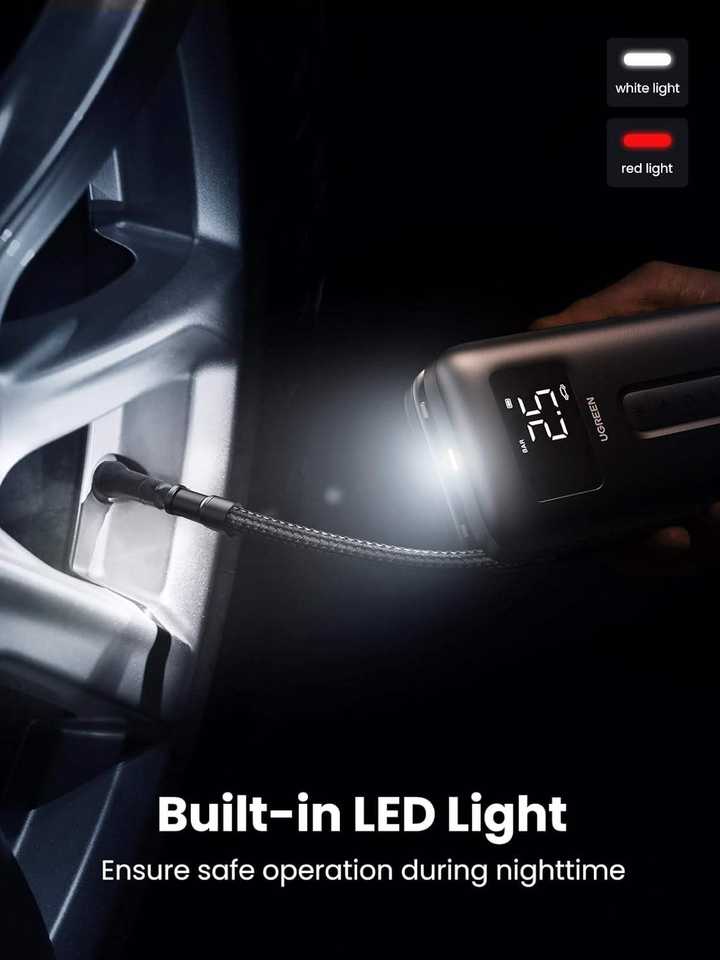 Emergency Light, Power Indicator, Tire Pressure Monitor, Portable, Automatic Shut Off, fast inflateFunction