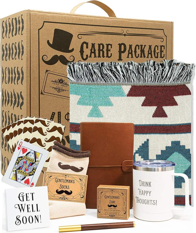 UIONEN Classic Fashion Trend Get Well Gift Basket Men Care Package Soft Blanket Insulated Mug Journal Pen Soap Socks Vintage Box