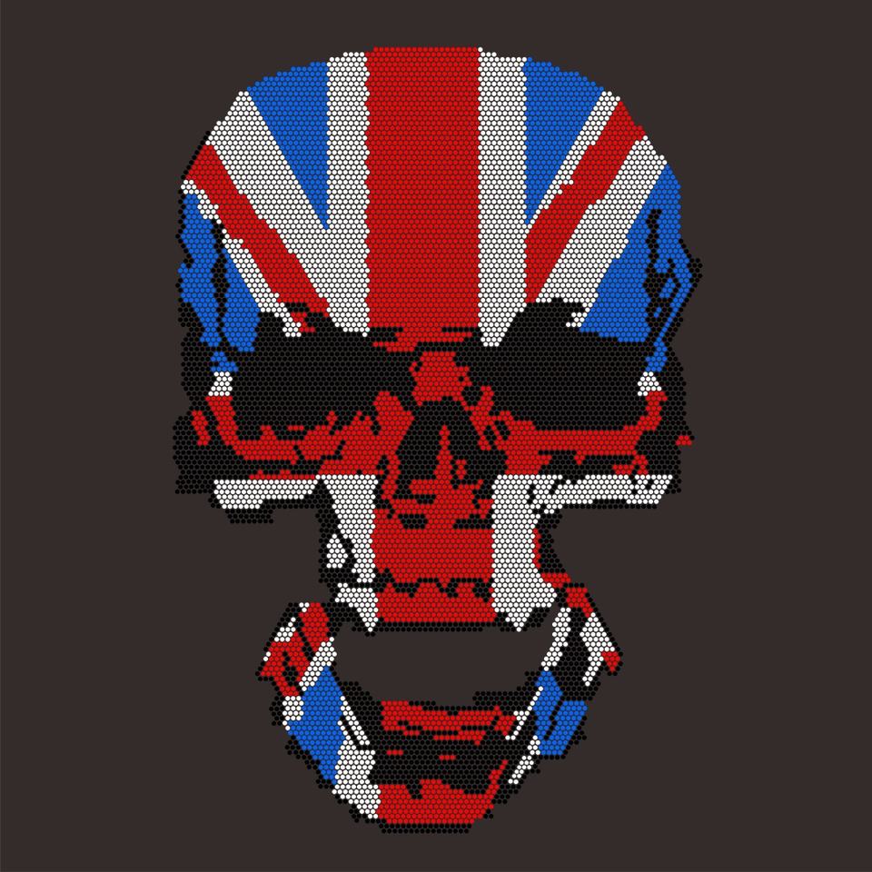 UK Flag Bling Rhinestone Custom Glitter Heat Transfer Crystal Skull Rhinestone Iron on Transfers for Garment Accessories