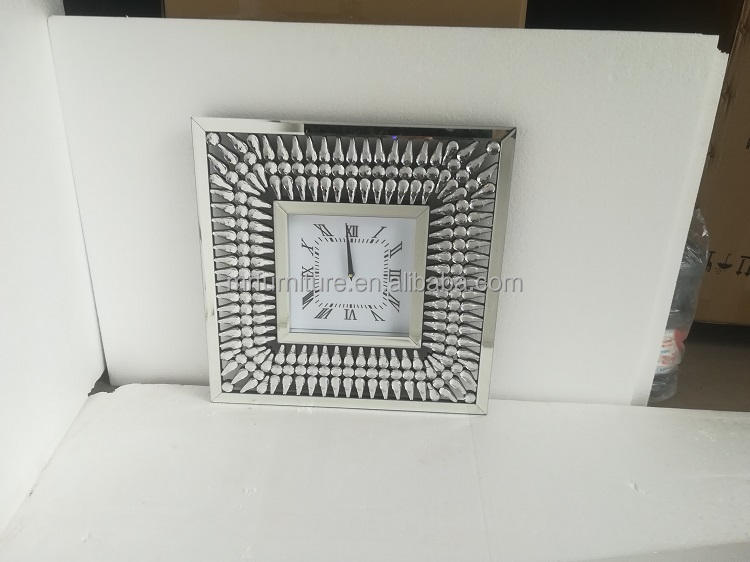 UK Hot Sales Square Crystal Teardrops Wall Mirror Decorative Art Wall Clock for Home Hotel Living Room