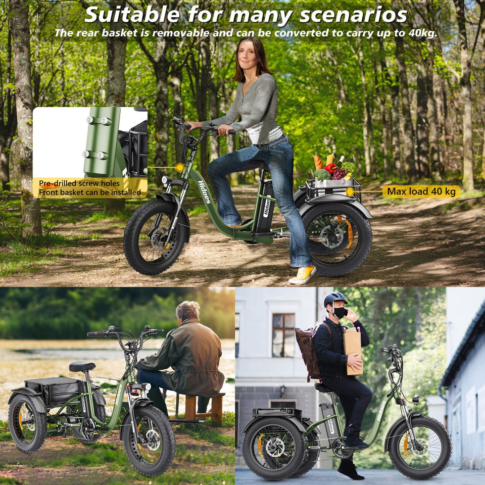 UK US Europe Warehouse Ready to Ship Three-Wheel Hidoes ET1 Cargo Electric Bike 48V 20Ah 7 Speed Brushless Motor Lithium Battery