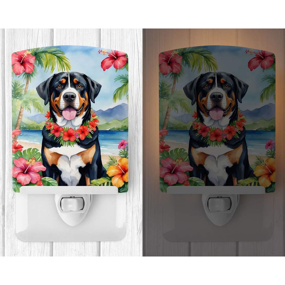 UL-Certified Compact 6x4x3 Multicolor Ceramic Night Light NEW Greater for Swiss Mountain Dog Luau Design for Bedroom Hallway