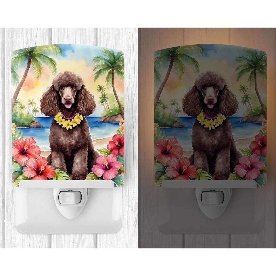UL-Certified Compact Ceramic Night Light New Chocolate Poodle Luau 6x4x3 Multicolor for Bedroom Bathroom Nursery Hallway Kitchen