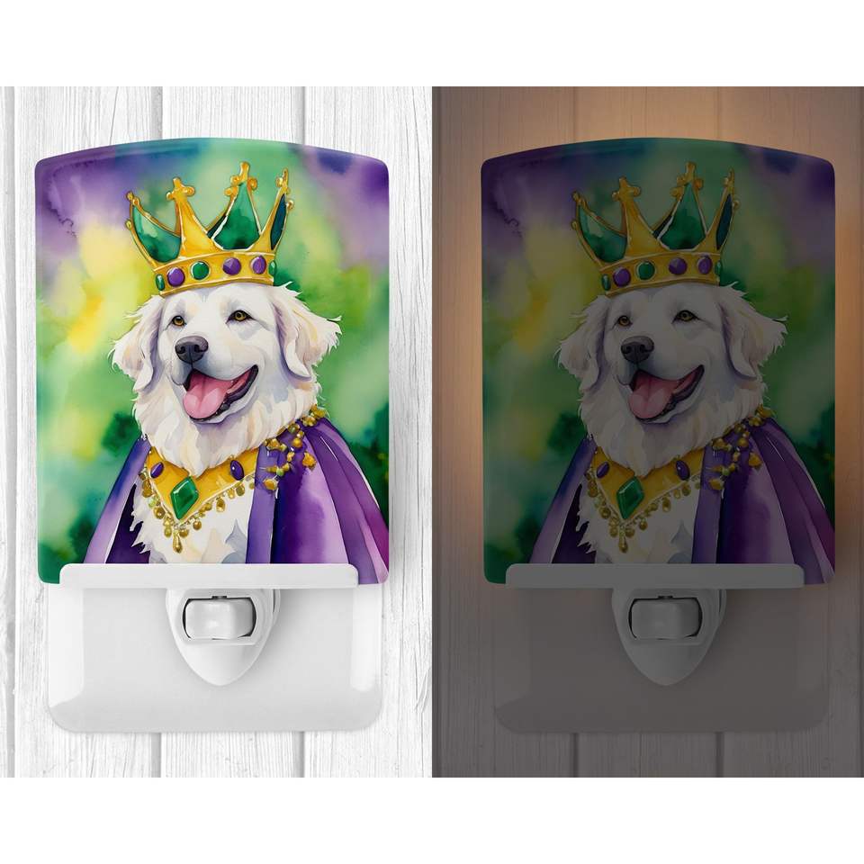 UL-Certified Kuvasz King Mardi Gras Ceramic Compact Night Light for Bedroom Bathroom Nursery Hallway Kitchen Multicolor 6x4x3
