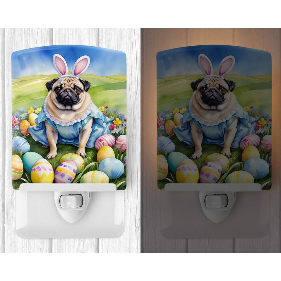 UL-Certified New Pug Easter Egg Hunt Ceramic Night Light Compact 6x4x3 Multicolor for Bedroom Hallway Kitchen Party Decorations