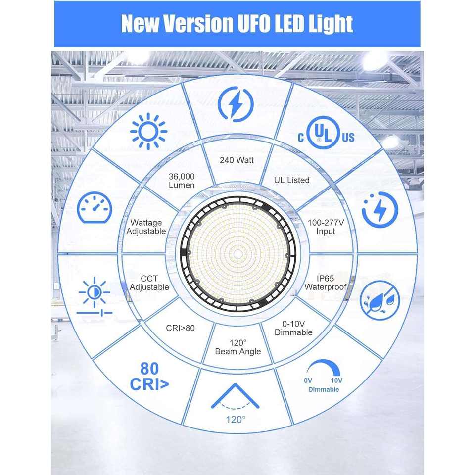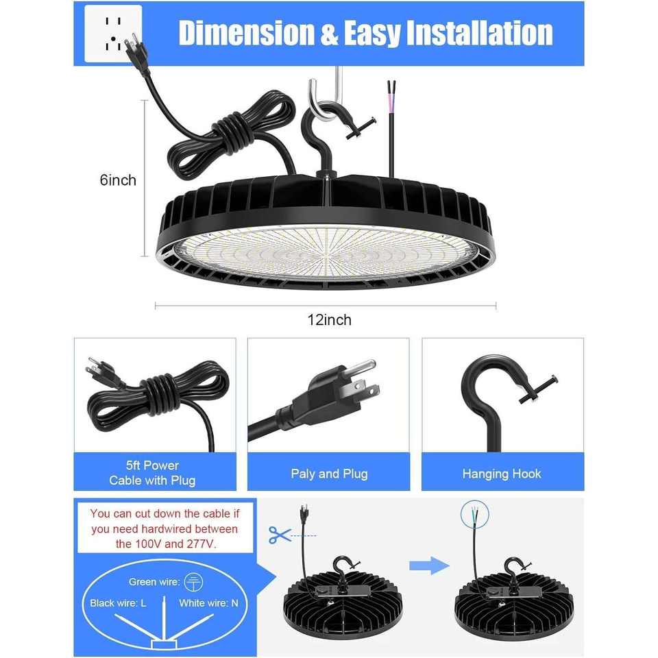 UL&DLC Listed 150W for LED High Bay Light 22500 LM 3CCT Tunable 5000K 5' Cable with Plug for 100-277V Warehouse Lighting