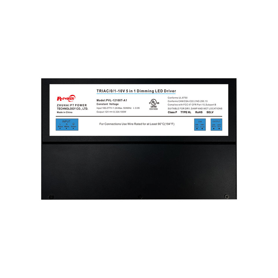 CUL FCC CE RoHS Certified 100W 12V 24V TRIAC 0-10V 5 in 1 Dimming Metal Case Junction Box Integral LED Power Supply