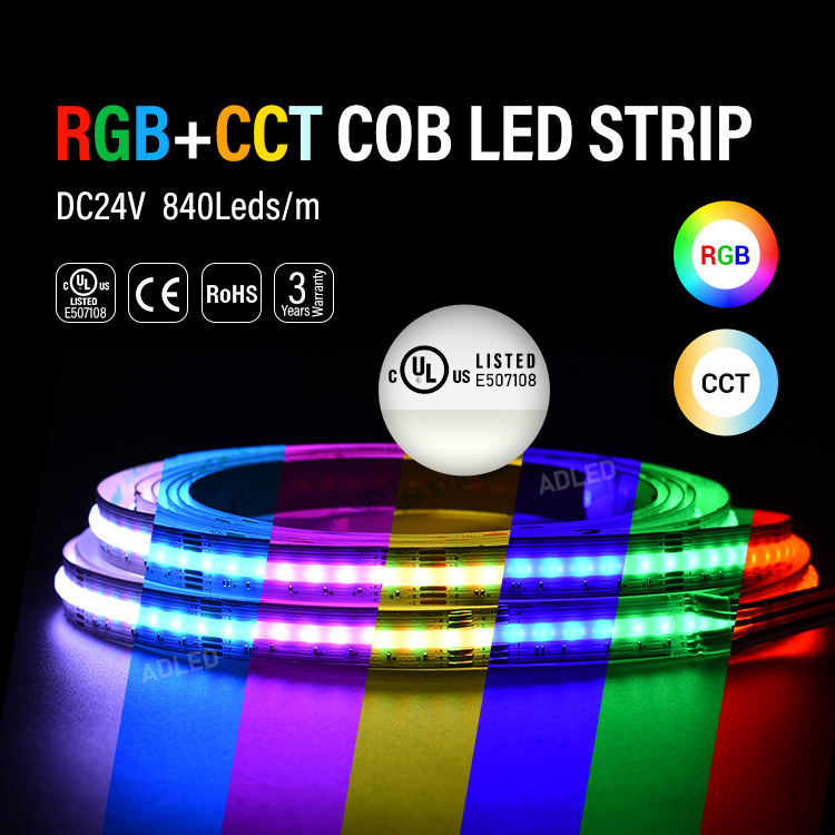 Ul Listed Cri90 Rgbcct 24V Led Cob Strip Light