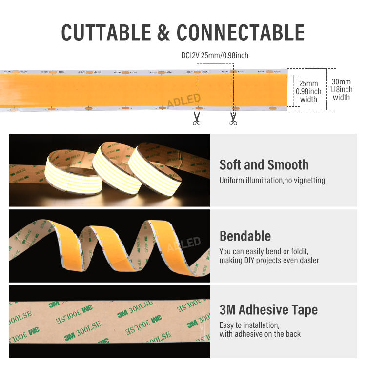 UL Passed 30Mm 2700K 25Mm Cut Cob LED Strip Light