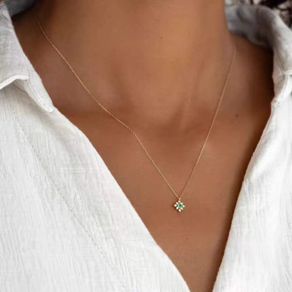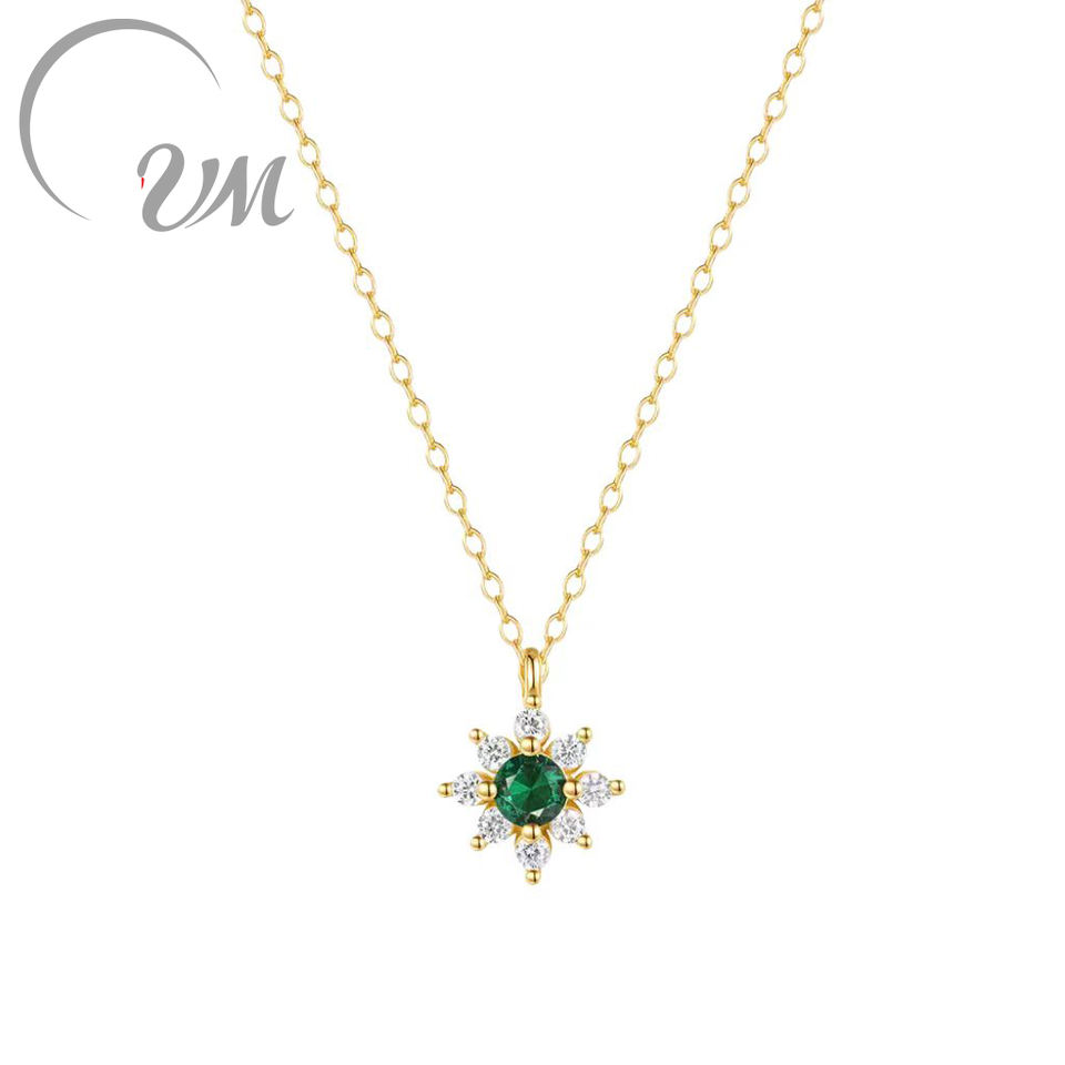 UM JEWELRY Flower Green Zircon Pendant Necklace Women's Fashionable 925 Sterling Silver 18K Gold Plated Trendy Link Gift