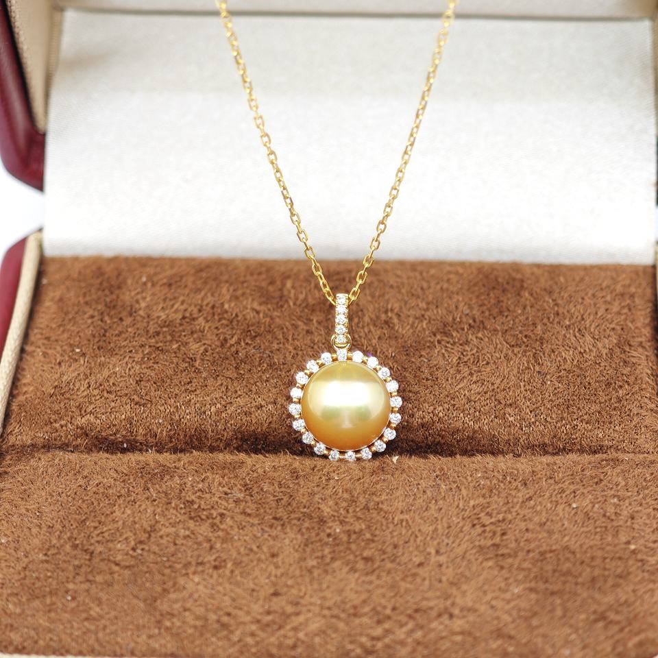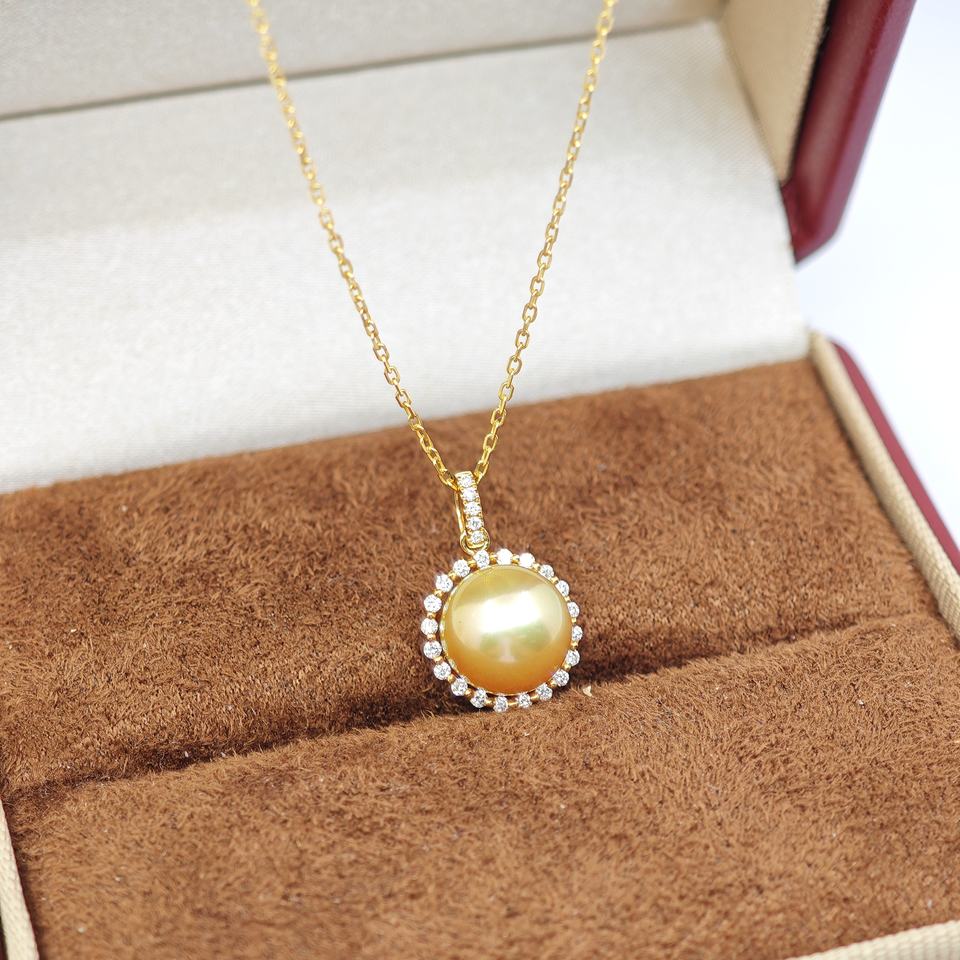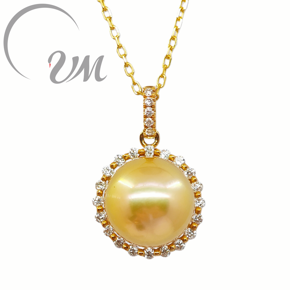 UM Jewelry 18K Solid Gold Pendant Necklace Wholesale Natural Sea Pearl Diamond Unisex/Men/Women Anniversary Daily Wedding Gift