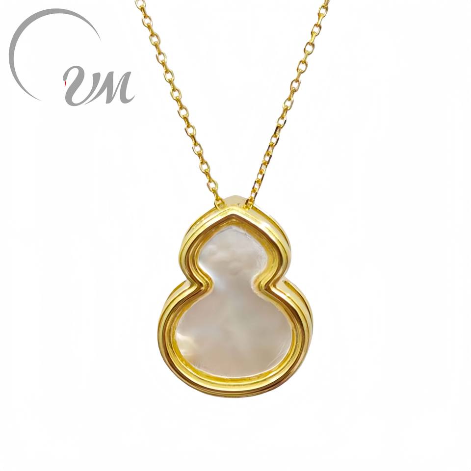 UM Jewelry 925 Sterling Silver Gold Plated Pendant Necklace Wholesale Gourd-shaped Mother-of-pearl Unisex/Men/Women Wedding