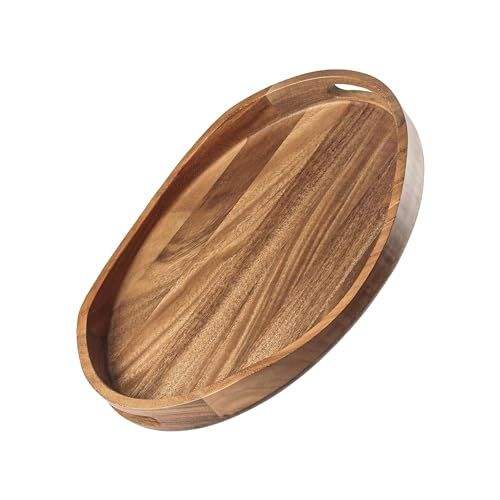 UNIQUE FARMOUSE round Acacia Wood Serving Tray for Kitchen Home or Hotel Classic Style Tableware for Party or Food Ser