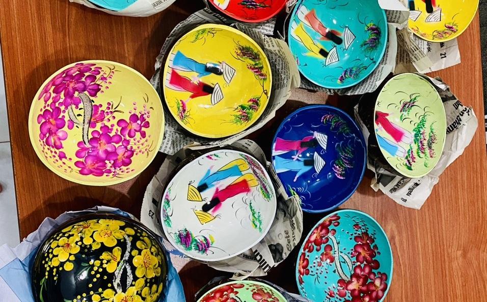 UNIQUE HANDICRAFT VIETNAM COLOR LACQUERWARE COCONUT BOWLS- TRADITIONAL PAINTED SHELL BOWL DINNERWARE at LOW PRICE