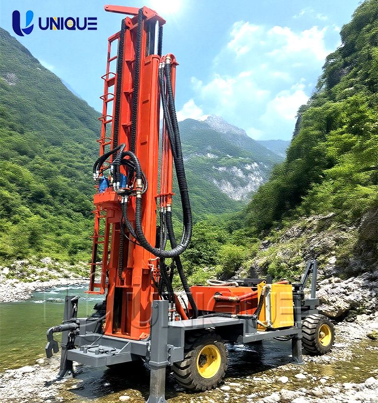 UNIQUE Hot sale Portable Trailer 300m 400m 500m Deep Water Well Drilling Machine Mine Drilling Rig Water Drill Rig for sale