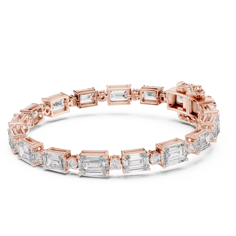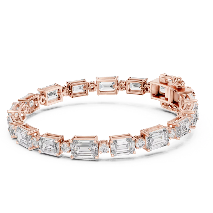 UNIQUE LAB GROWN EMERALD CUT DIAMOND RHODIUM PLATED CERTIFIED TENNIS BRACELET 18KT ROSE GOLD DAILY OFFICE WEAR WEDDING