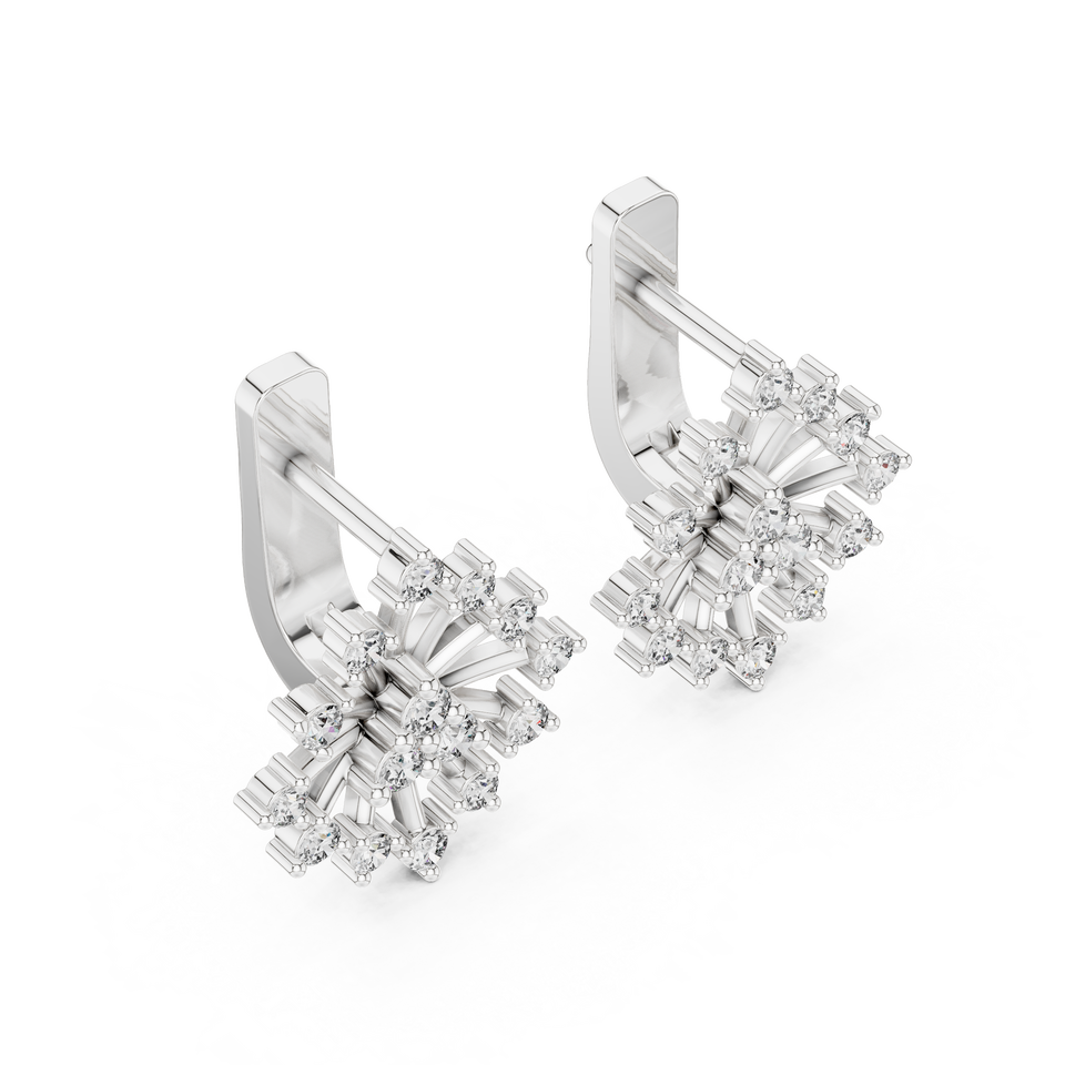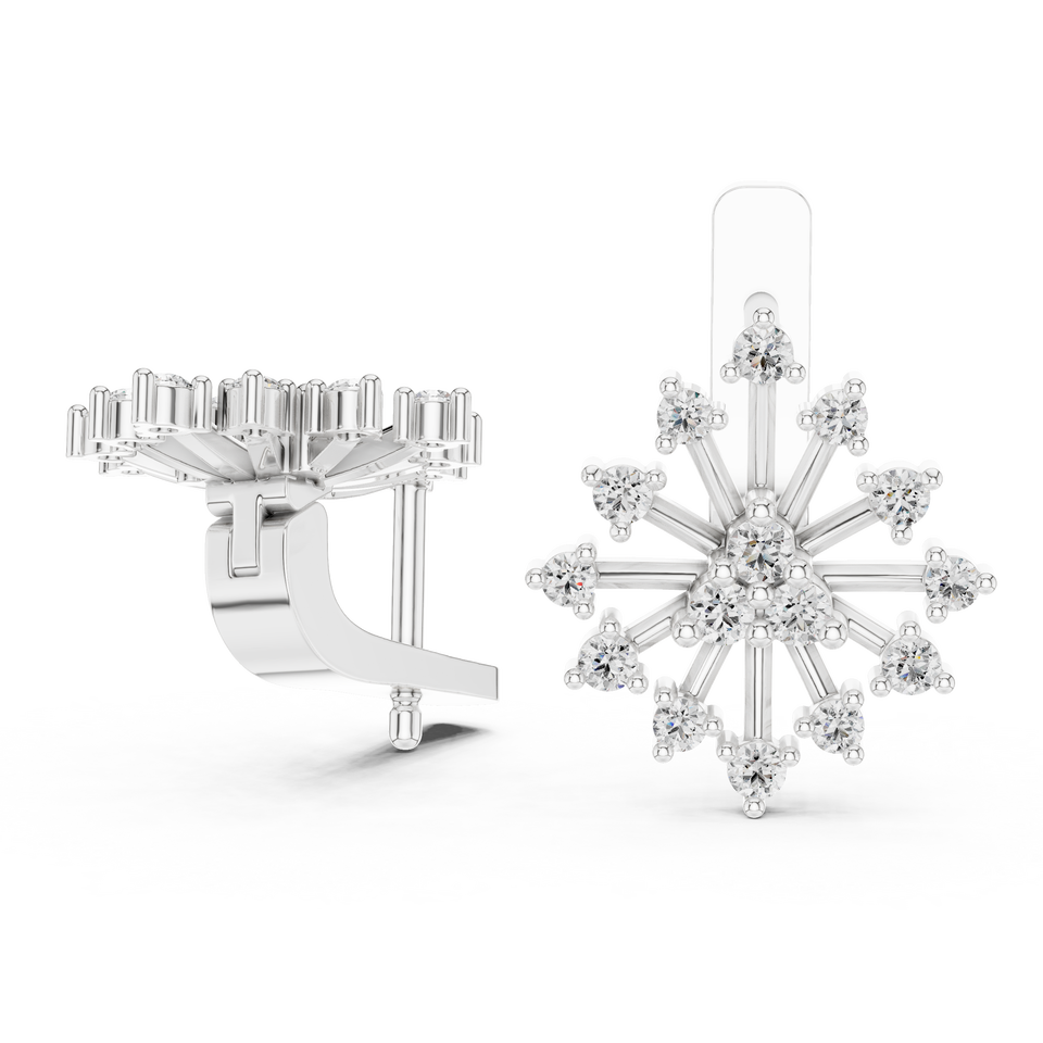 UNIQUE LAB GROWN Round DIAMOND SNOWFLAKE EARRINGS CLIP 18KT WHITE GOLD RHODIUM PLATED LUXURY DAILY/ PARTY WEAR GIFTING for WOMEN
