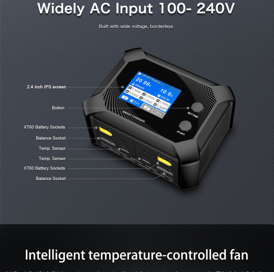 UP12 Smart Charger AC100-240V 200W Dual Channel High Power RC Charger 1-6s LiHV/LiPo/LiFe/LiIon Battery Magnetic Mobile Phone