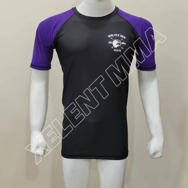 UPF 50 Custom Logo Rash Guard Mma Compression Shirt Short Sleeve UV Protective Sublimation Printing for Men