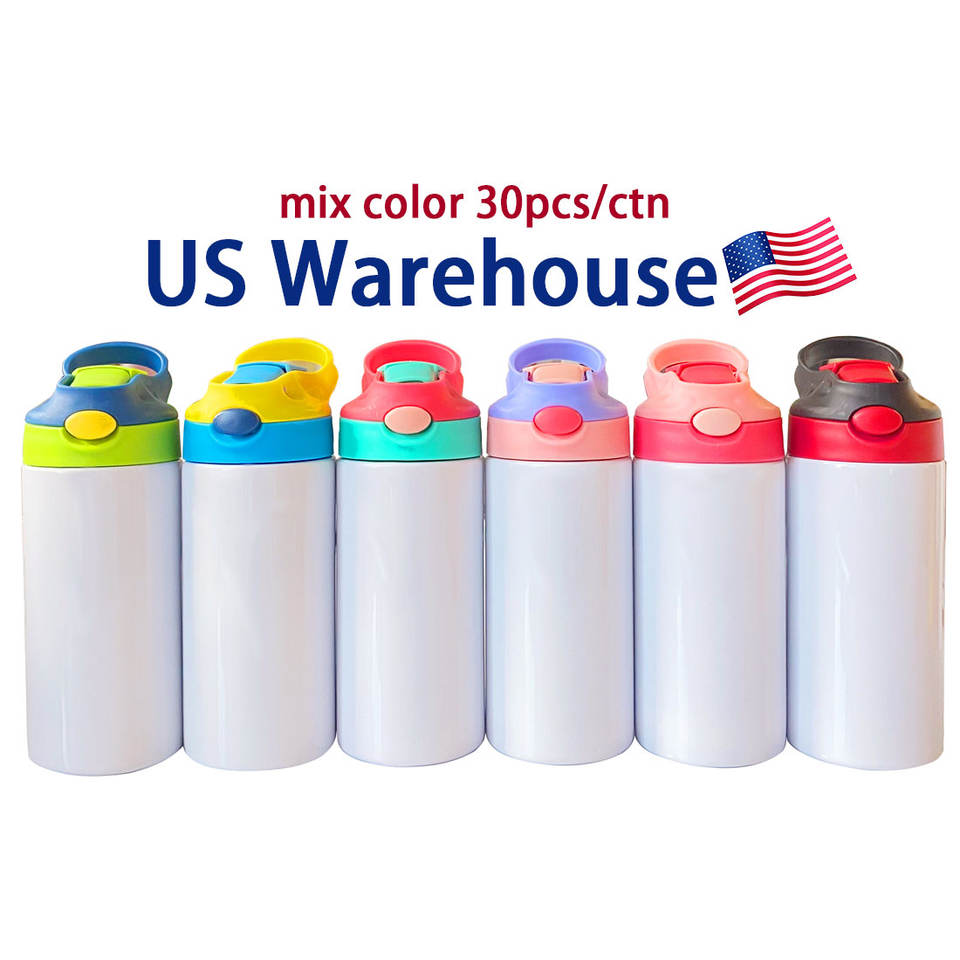 US RTS 12oz/350ml Sublimation Bounce Kids Tumbler Stainless Steel Kids Sublimation Blank Cup with Straw Mix Colors 25pcs