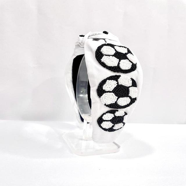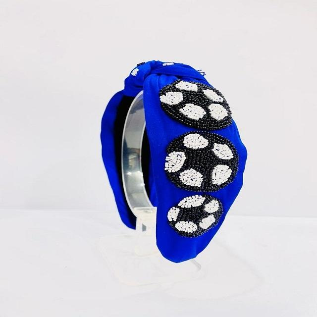 US Soccer Ball Team Hairband Handcrafted Top Knotted Seed Beaded Crystal Rhinestone Pearl Jeweled Fabric Multicolor Headbands