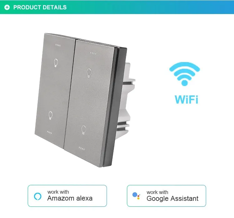 US Standard Socket House Wall Mount Electric Light Switch White Color Metal Double 2pin/3pin Socket Interruptores