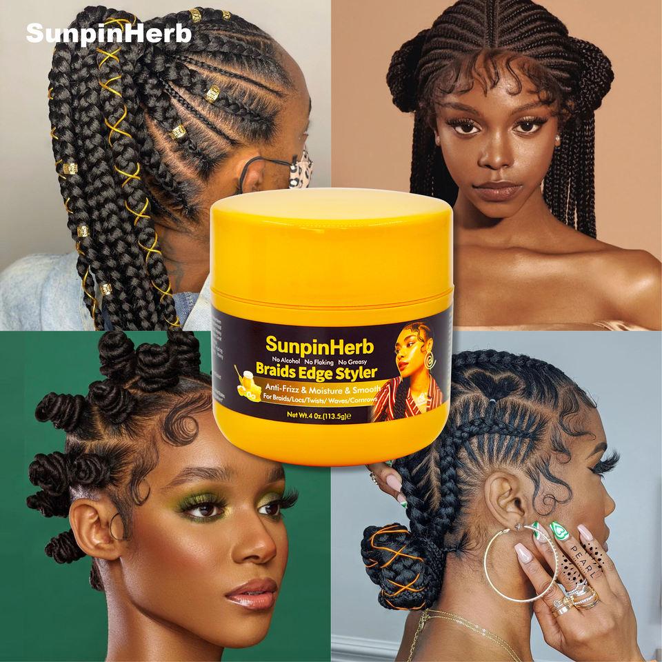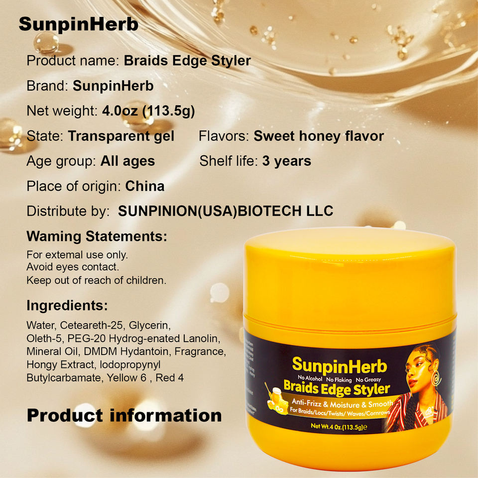US Stock Organic 4oz Braiding Gel Wholesale Strong Hold Lock Twist Smooth Finish Flake Free Dry Hair Styling Gel