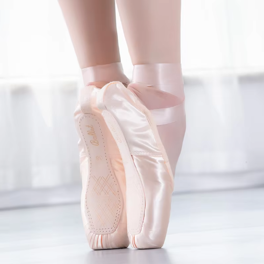 US in Stock Girls' Ballet Pointe Shoes with Satin Upper and Genuine Leather Outsole