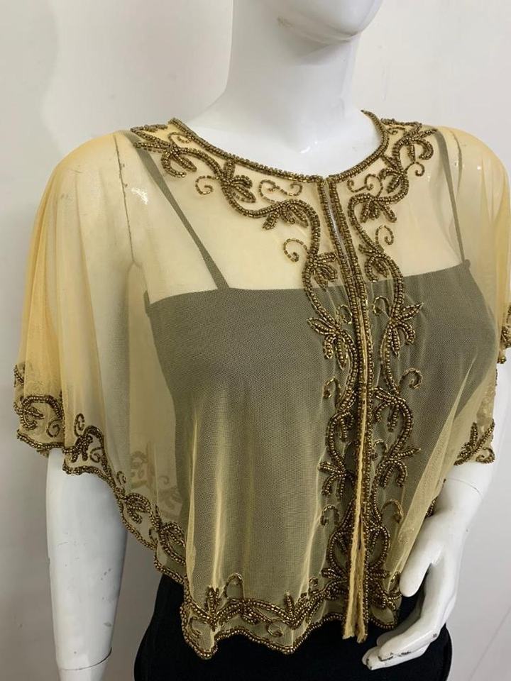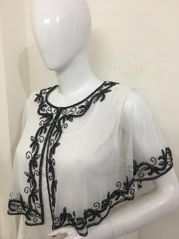 USA Best Selling Vintage Solid Plus Size Net Fabric Poncho Shrug Top O-Neck Sleeveless Handmade Beads for Women Girls MAKE INDIA