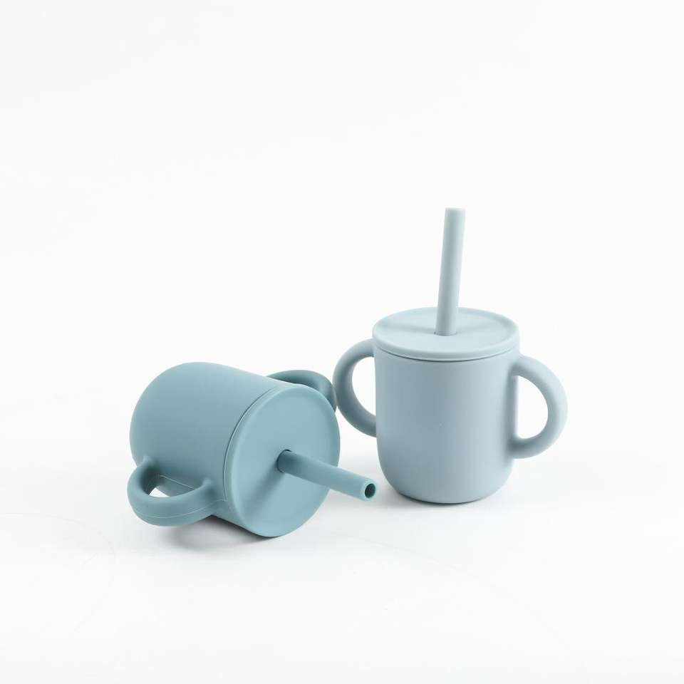 USA Free Shipping BPA Free Safe No-Spill Food Grade Platinum Silicone Eco-friendly Sippy Drinking Cups Lid Straw Baby Infant