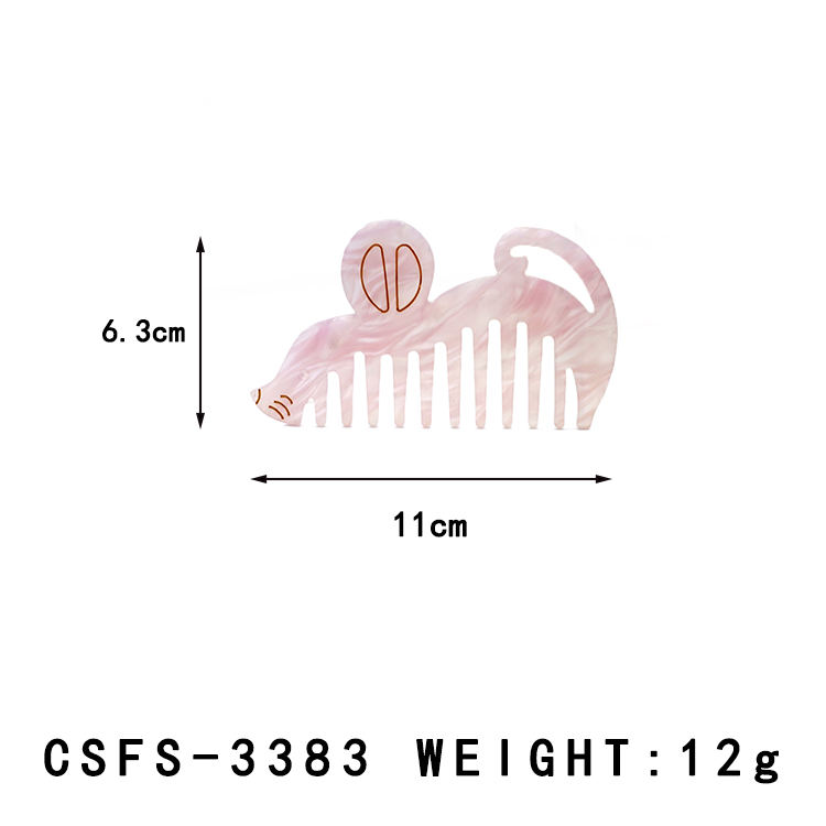 USA Glow & Brooks inc OBM 11cm Pink Eco-friendly Acetate Hair Comb Cute Mouse Shape Animal Comb Support Material Wholesale