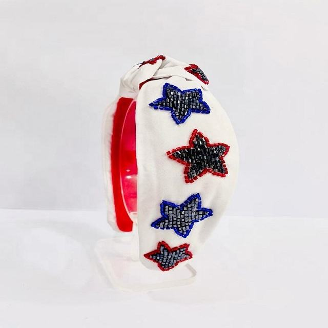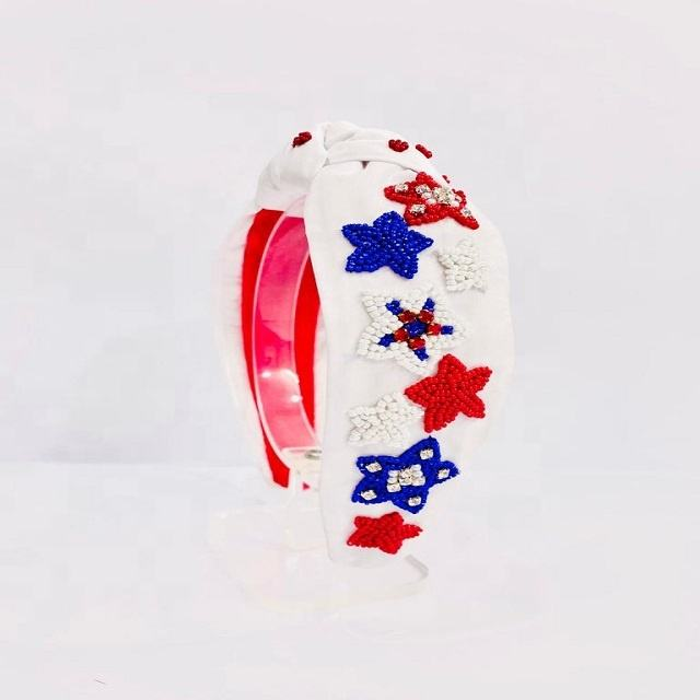 USA International Day Beaded Headbands Happy Home Seed Beaded Hairbands Indian Hand Embellished Seed Beaded Hairbands Collection
