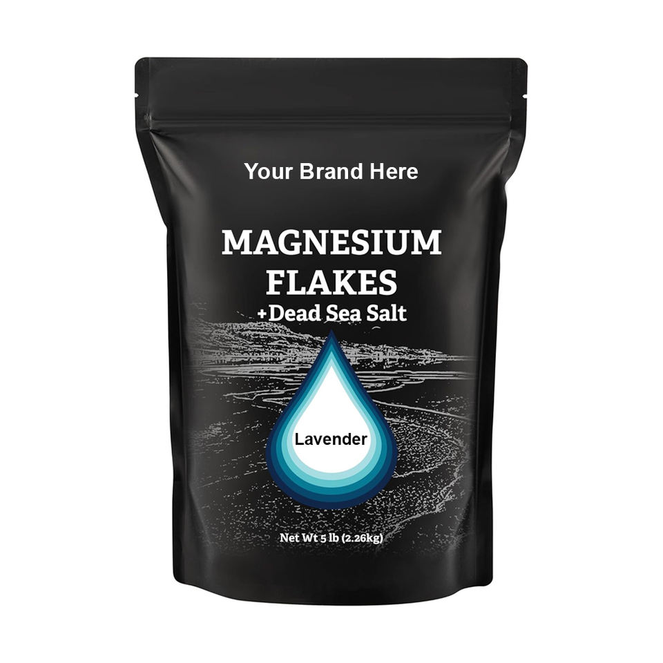USA-Made 5 LB Private Label RAW Lavender Infused Magnesium Flakes & Dead Sea Salts Soaking Minerals Resealable Pack Bath Salt