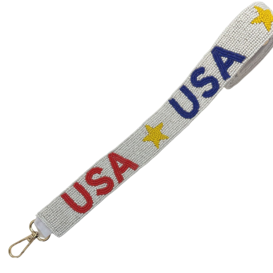USA Red, Yellow, and Blue Beaded Purse Strap Patriotic Handbag Accessory for Game Day, Events and Everyday Use Perfect for Girls