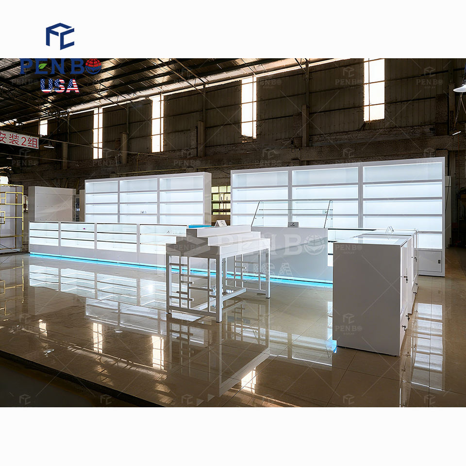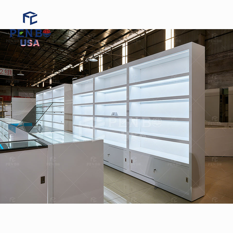 USA Supplier LED Lights Original Display Shelf Tall Glass Cigarette Display Cabinet Dispensary Store Smoke Shop Showroom Design