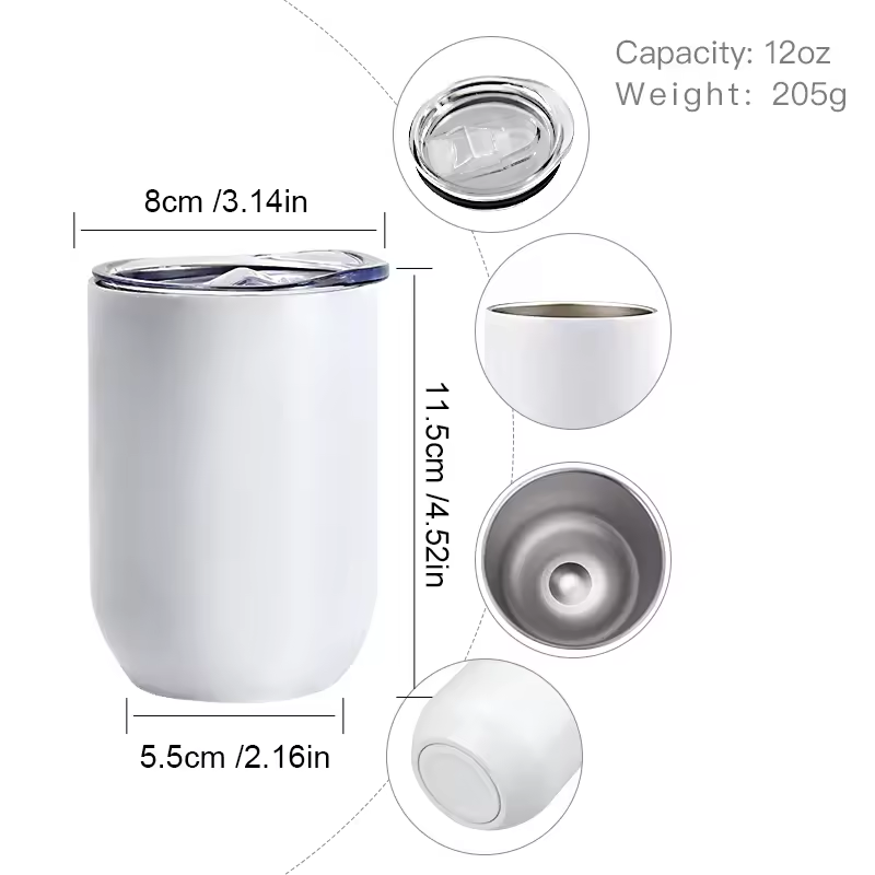 USA Warehouse 10oz 12oz 20 oz 30oz Eco-Friendly Sublimation Blanks Wine White Skinny Tumbler with Metal Straw for Giveaways