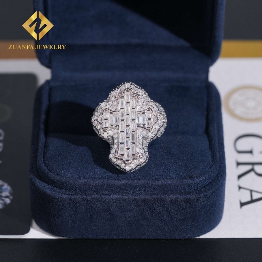 USA Warehouse Cross Ring Baguette Moissanite Ring VVS Iced Out Men Diamond Ring Ready to Ship Jewelry