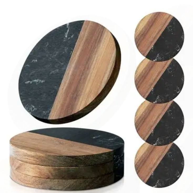 USA Warehouse Acacia Marble Block Coffee Mug Coasters Heat-Proof Tea Cup Table Mat Bar Dining Tea & Coffee Mat Coasters