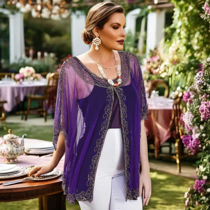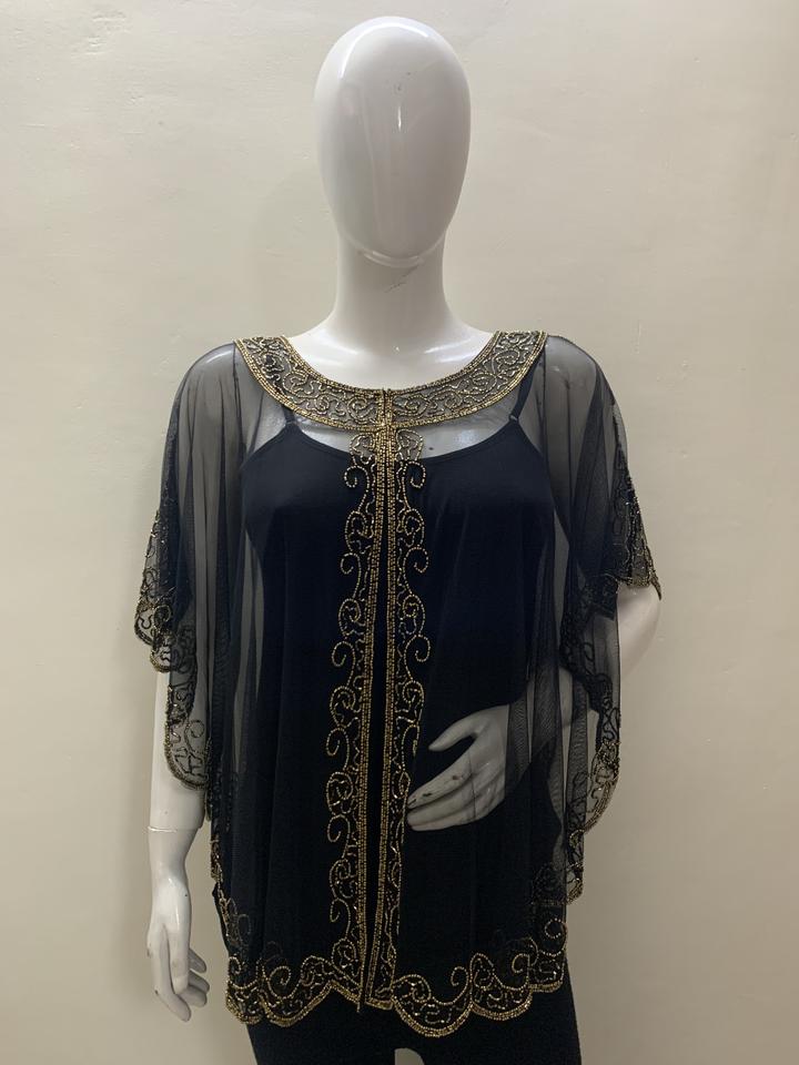 USA Women's 2025 Summer Soft Net Fabric T-Shirt Blouse Poncho Shrug Hand Embroidery Casual Dress Beach Evening Holidays Wear
