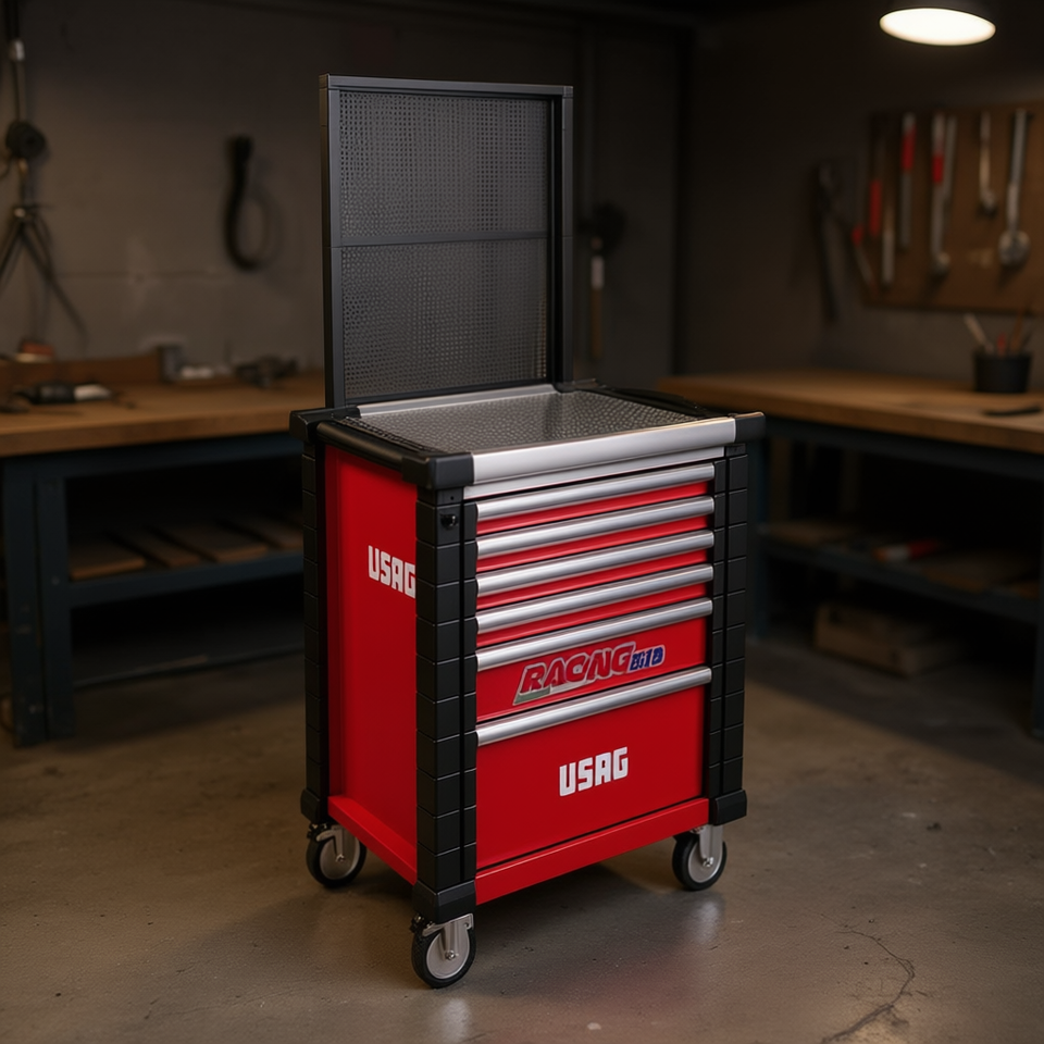 USAG Tool Chest 12 Drawer Rolling Cabinet With Top Shelf And Back Panel For Workshop Storage