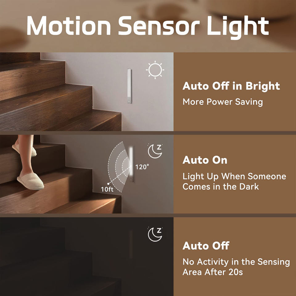 USB-C Motion Sensor LED Under Cabinet Light , Wireless Magnetic Stick-On Strip Night Light for Kitchen Counter & Desk