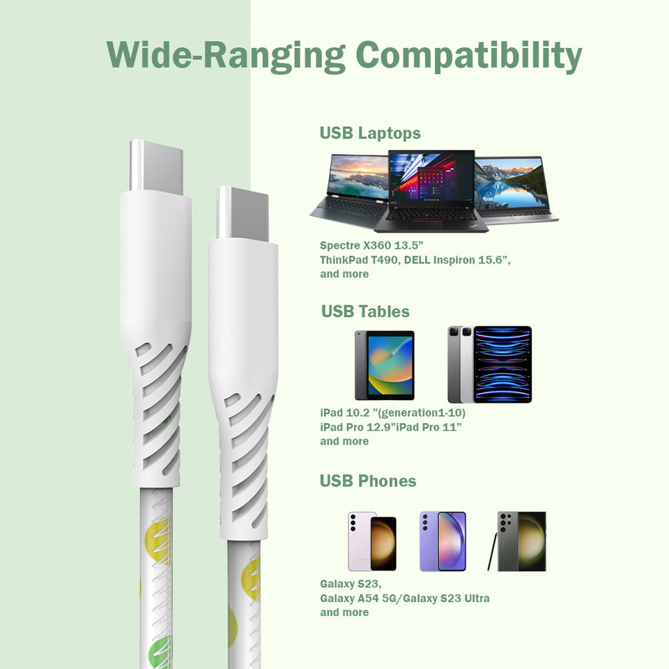 USB-C to USB-C 60W Fast Charging Cable with PU Leather Pattern Print Jacket in Stock