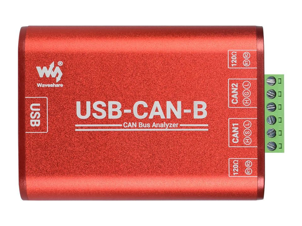 USB-CAN-B Waveshare Industrial USB Adapter Dual-Channel CAN Analyzer 2500V DC Isolation 10Kbps-1Mbps Baud Rate Supports