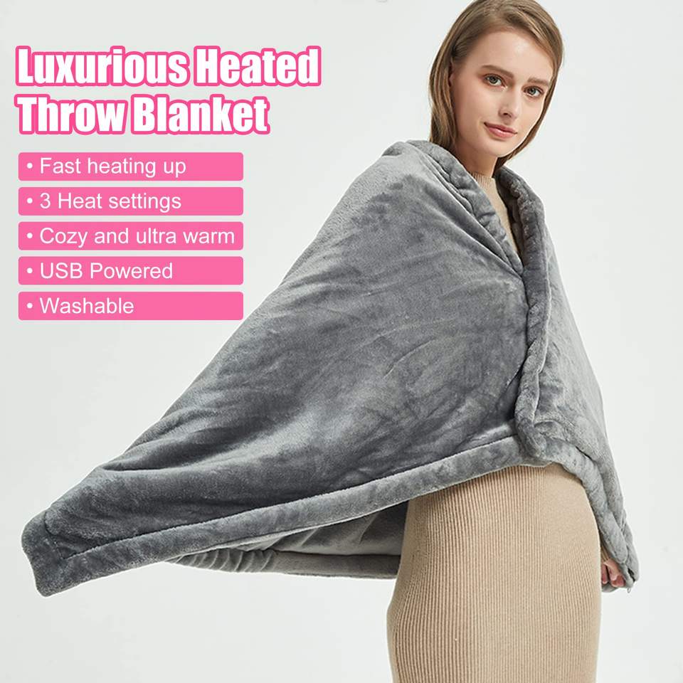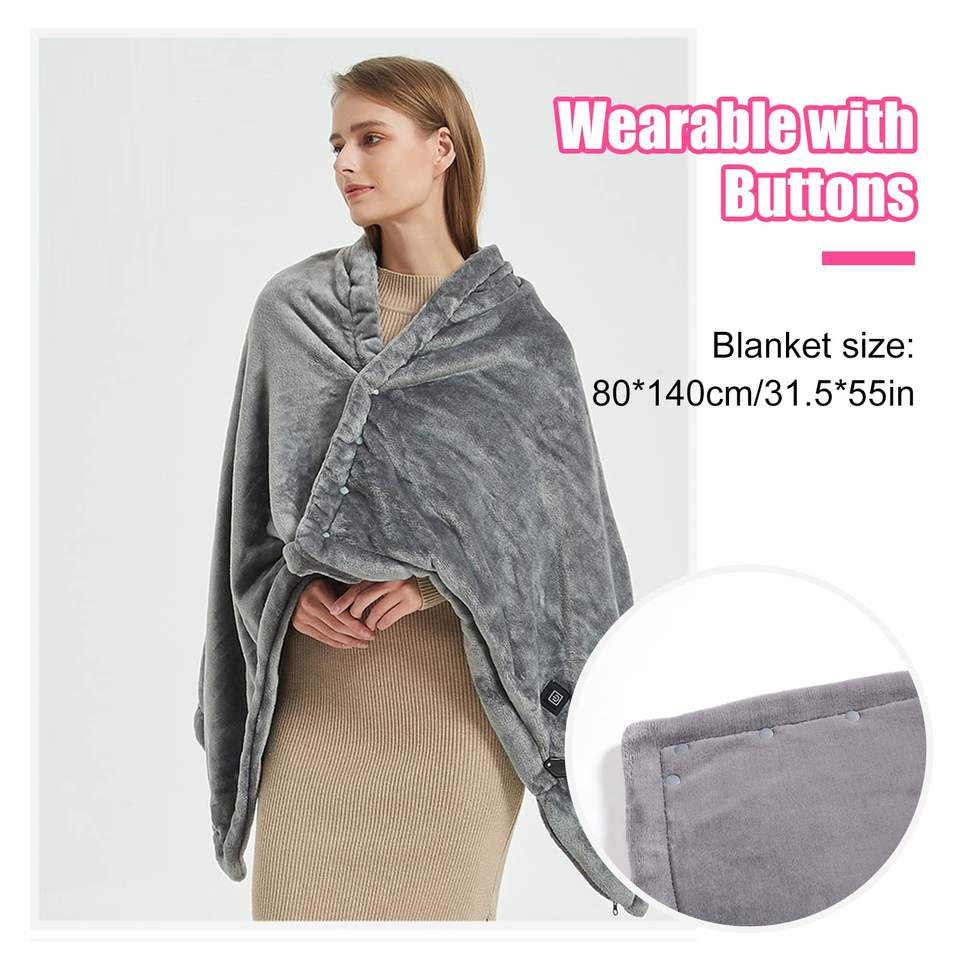 USB Heated Blanket Wrap Luxury Flannel Wearable Heated Throw Blanket with Buttons Ultra Warm Heating Neck and Shoulders Shawl