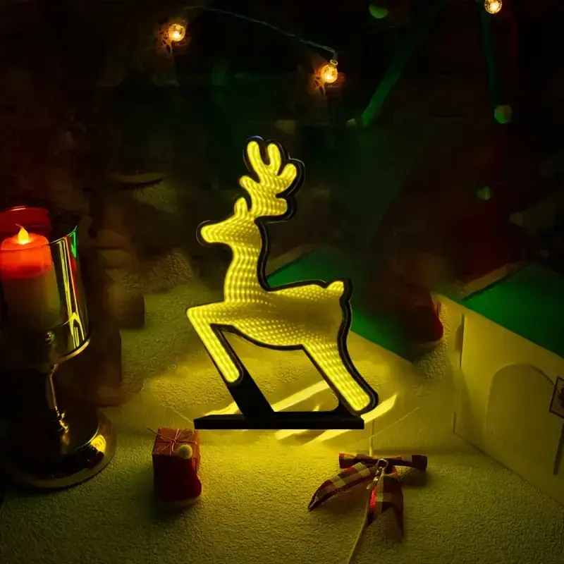USB-Powered Deer Neon Light with Thousand Layer Mirror-Waterproof for Parties Festivals & Mall Decoration Gift for Home